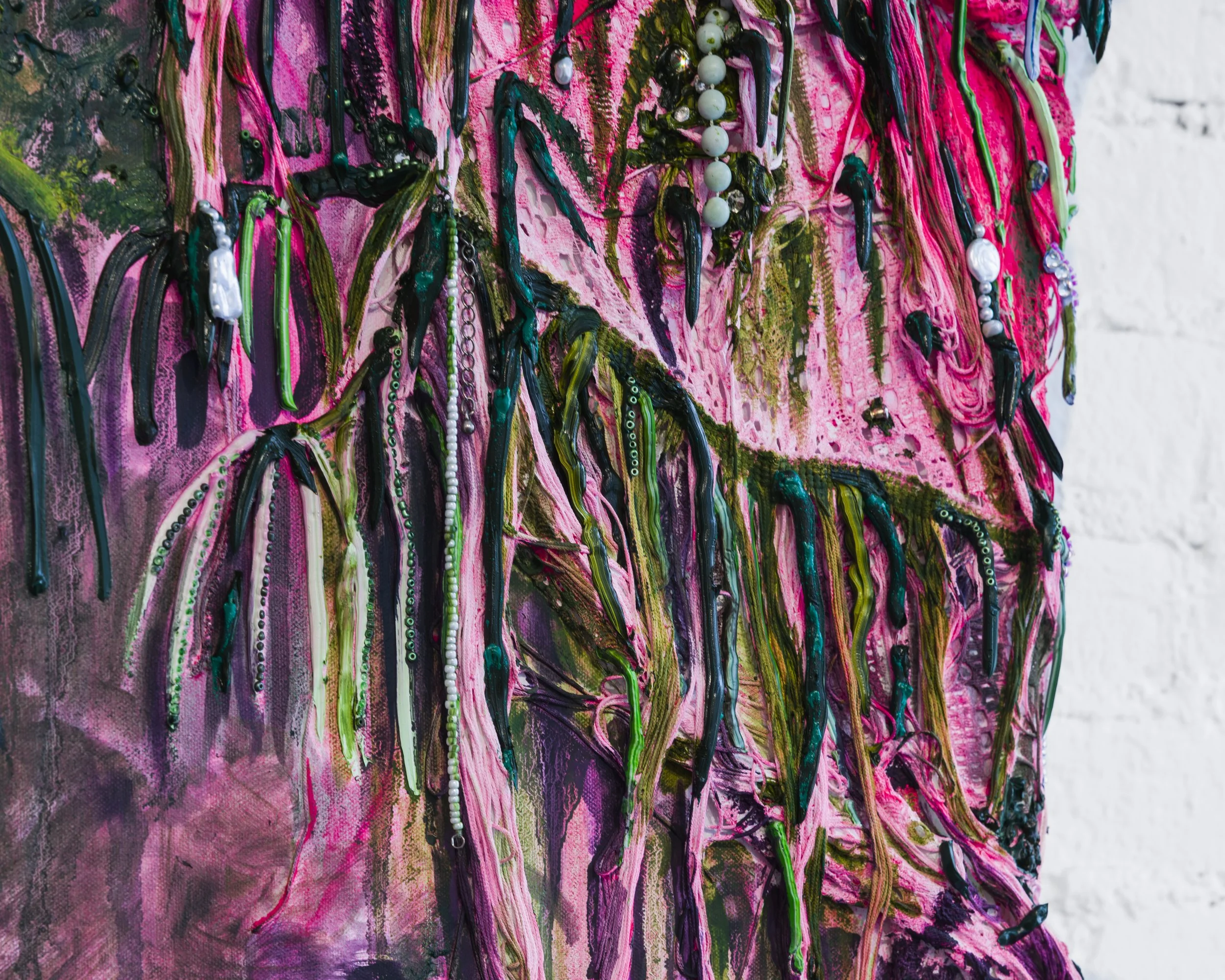 Born 1995 in Bellevue, Nebraska. Lives and works in New York. Gisela McDaniel is a diasporic, Indigenous CHamoru artist who explores the effects of trauma, displacement and colonisation through portraiture and oral histories. Interweaving audio interviews, assemblage and oil painting, she intentionally incorporates the portrait sitters' voices in order to subvert the traditional power relations of artist and sitter. Working primarily with women and non-binary people who identify as Black, Micronesian, Indigenous to Turtle Island, Asian, Latinx, and/or mixed-race, her work disrupts and responds to the systemic silencing of subjects in fine art, politics and popular culture. McDaniel received her BFA from the University of Michigan in 2019.