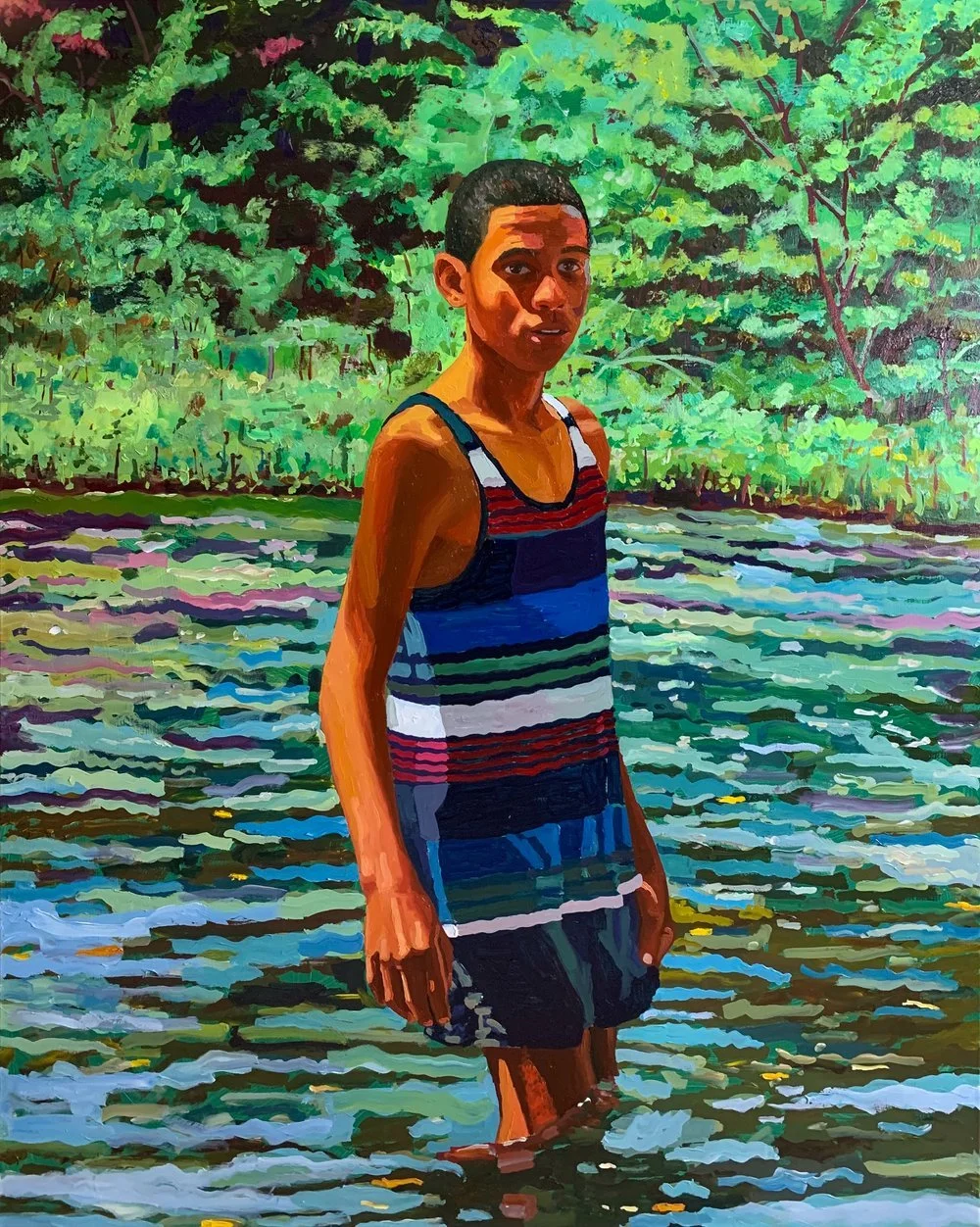 Vasquez shares, "Today, I feel an overpowering responsibility (or calling) to the arts and towards my Black, Latinx and immigrant communities. I paint using oils in a naturalistic manner as a means to give clarity to the subjects I present. My devotion is to the accurate representation of the convoluted histories of the Dominican Republic. I am aiming to highlight an allegorical narrative that presents the psychological states of the figures in my works while presenting a window to the viewer of their daily lives."