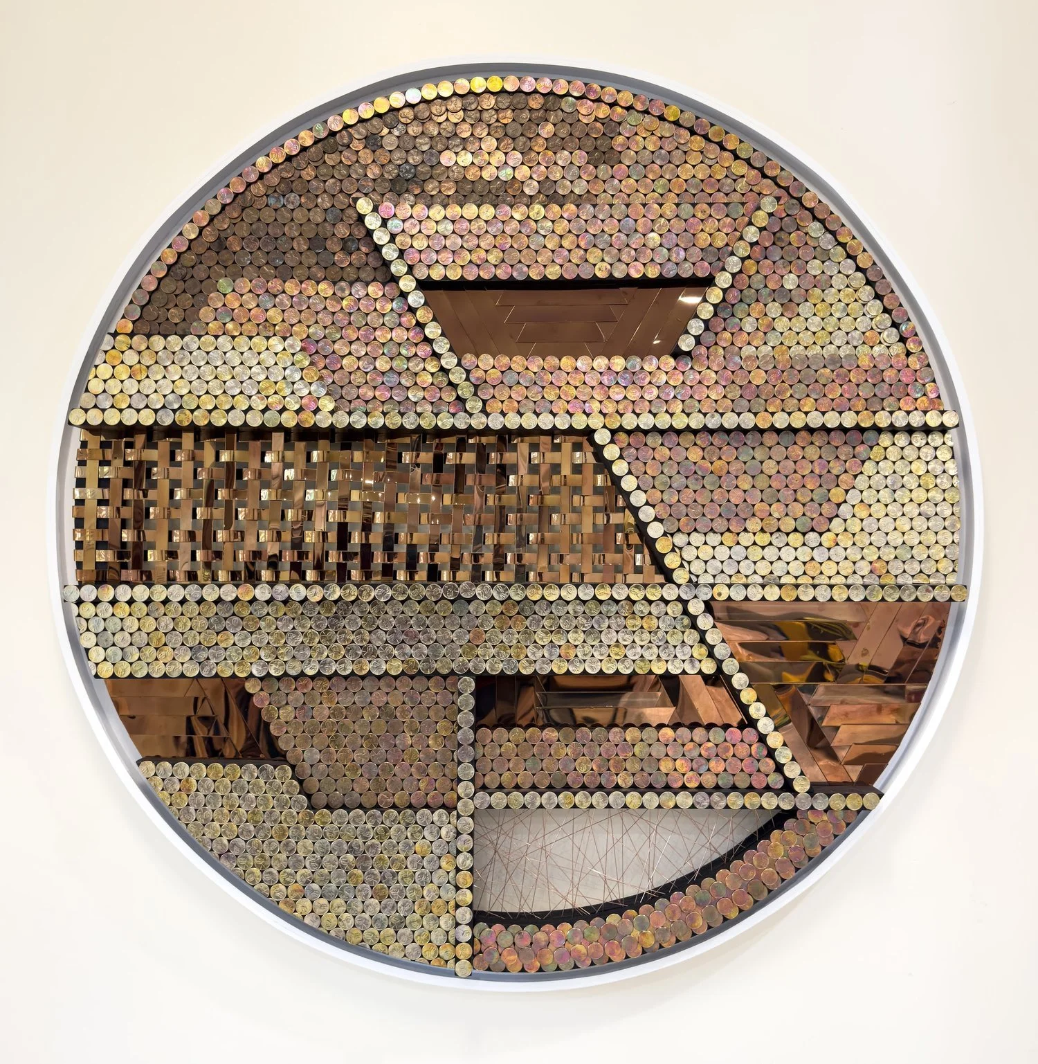 (b. 1992) creates sculptural paintings and installations by shifting otherwise worthless materials into encounters of value. He uses the smallest denomination of coins, stainless steel, wood, copper, found objects, and social engagements. His processes involve oxidation, plating, and other experimental activities that transform the texture and color of the materials into anything but their natural qualities – like the minted coins today. These works are manifested in forms of sculptural paintings, installations, drawings, prints, and social engagements.